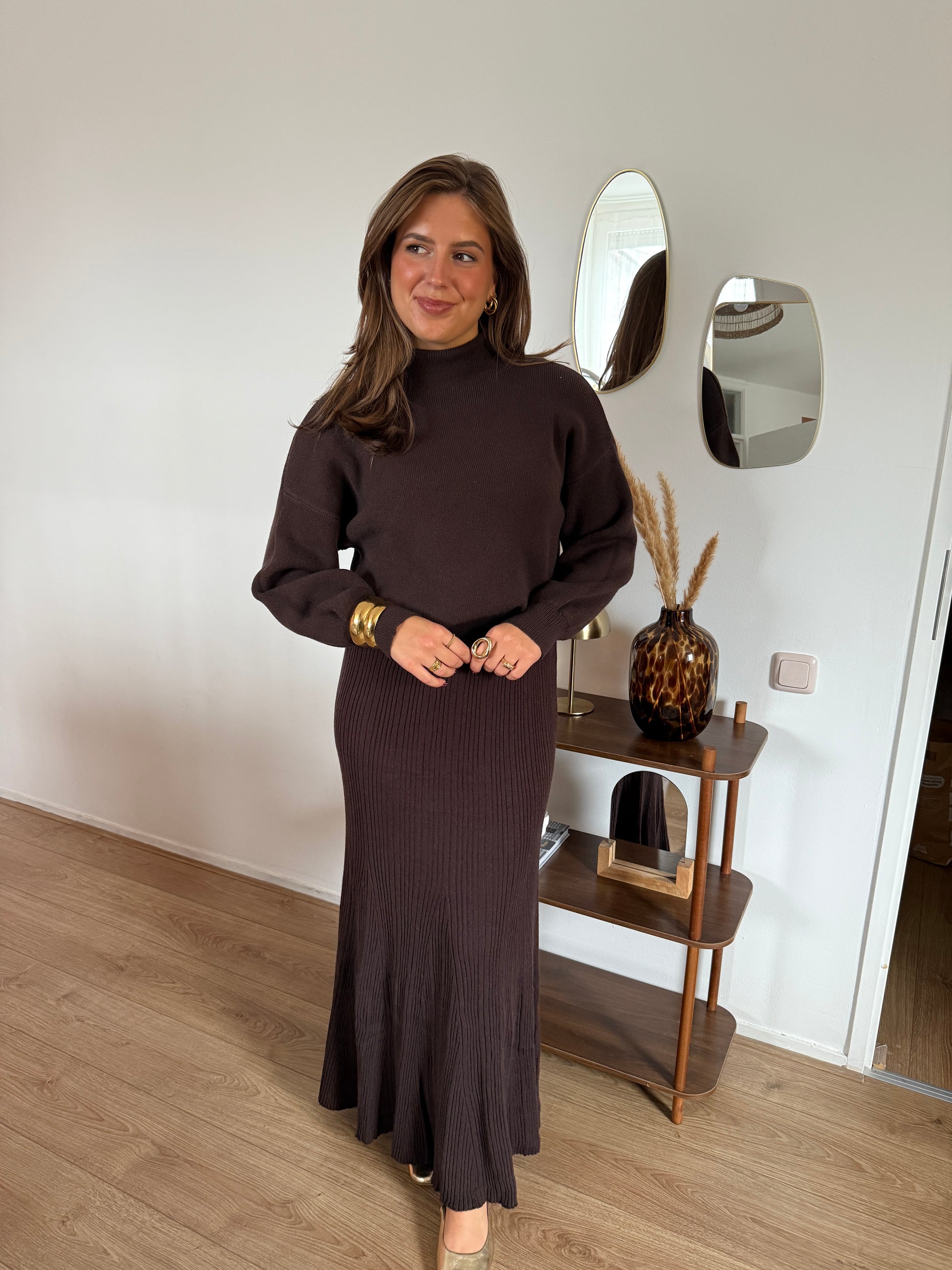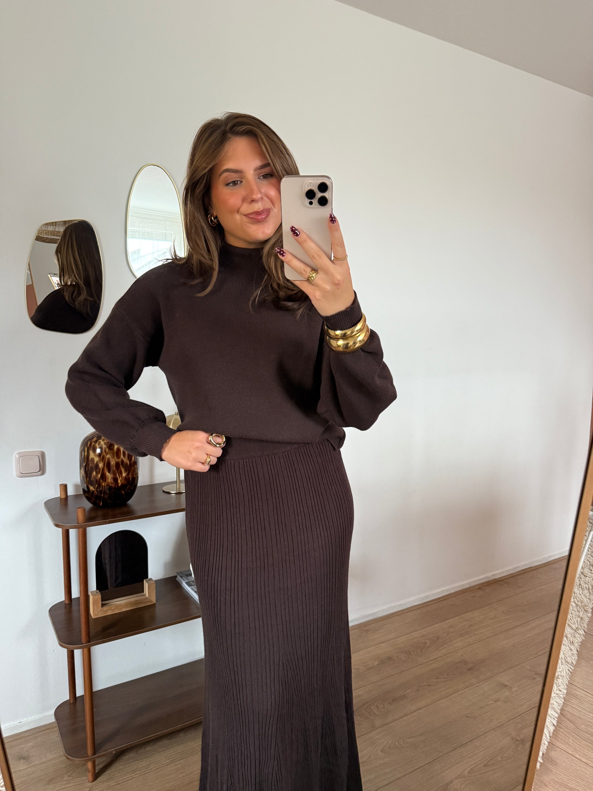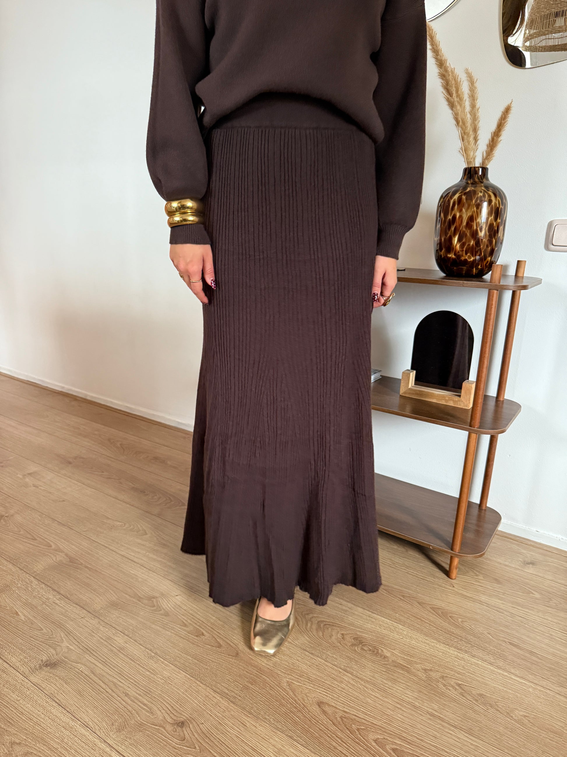 Deze lange rok van een dikkere, warme stof is ideaal voor de koudere dagen! ✨ De elastieken band zorgt voor een comfortabele fit. Perfect te dragen met een trui, blouse of vest.