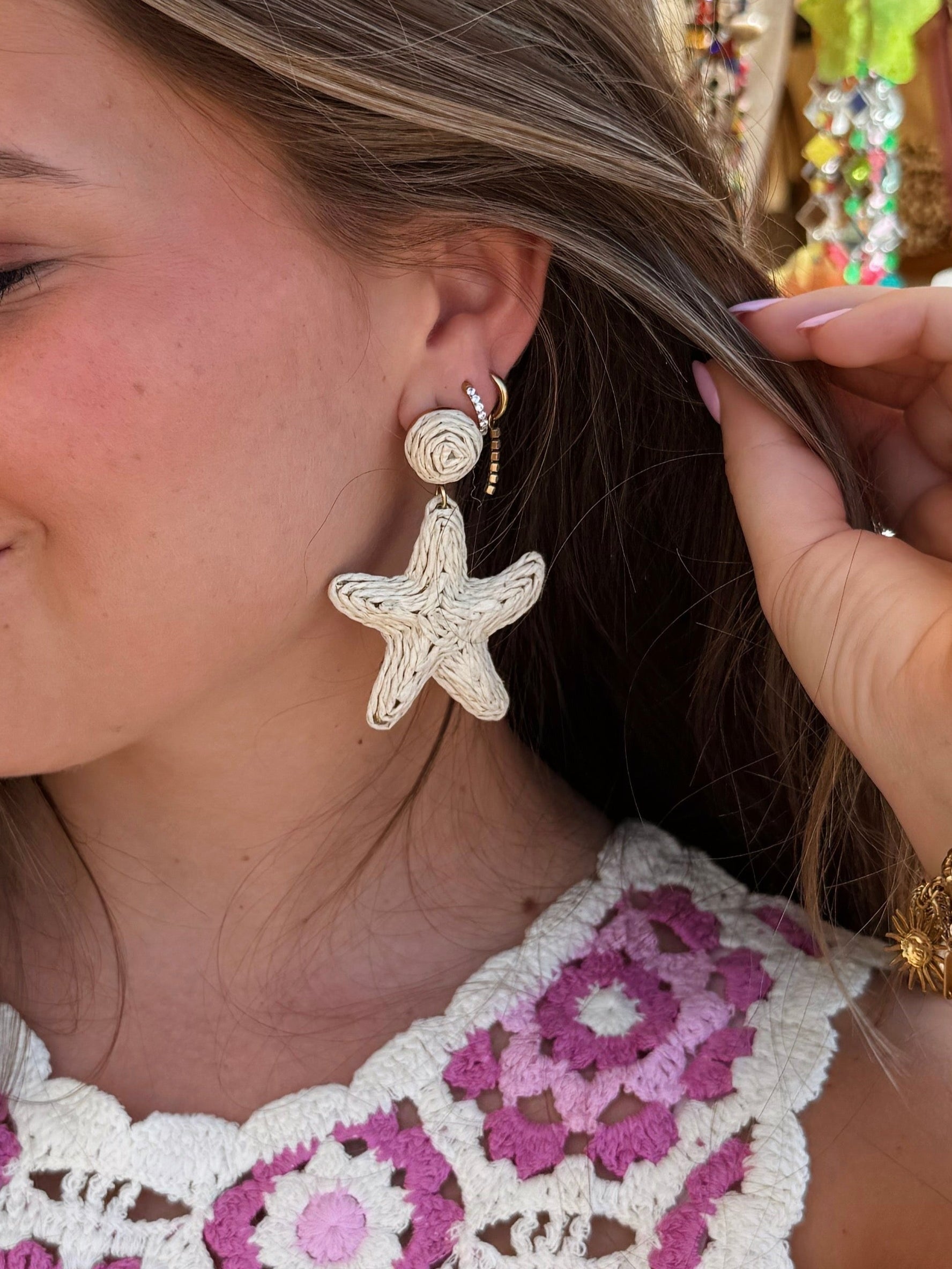 Oorbellen met zeester - Beige
