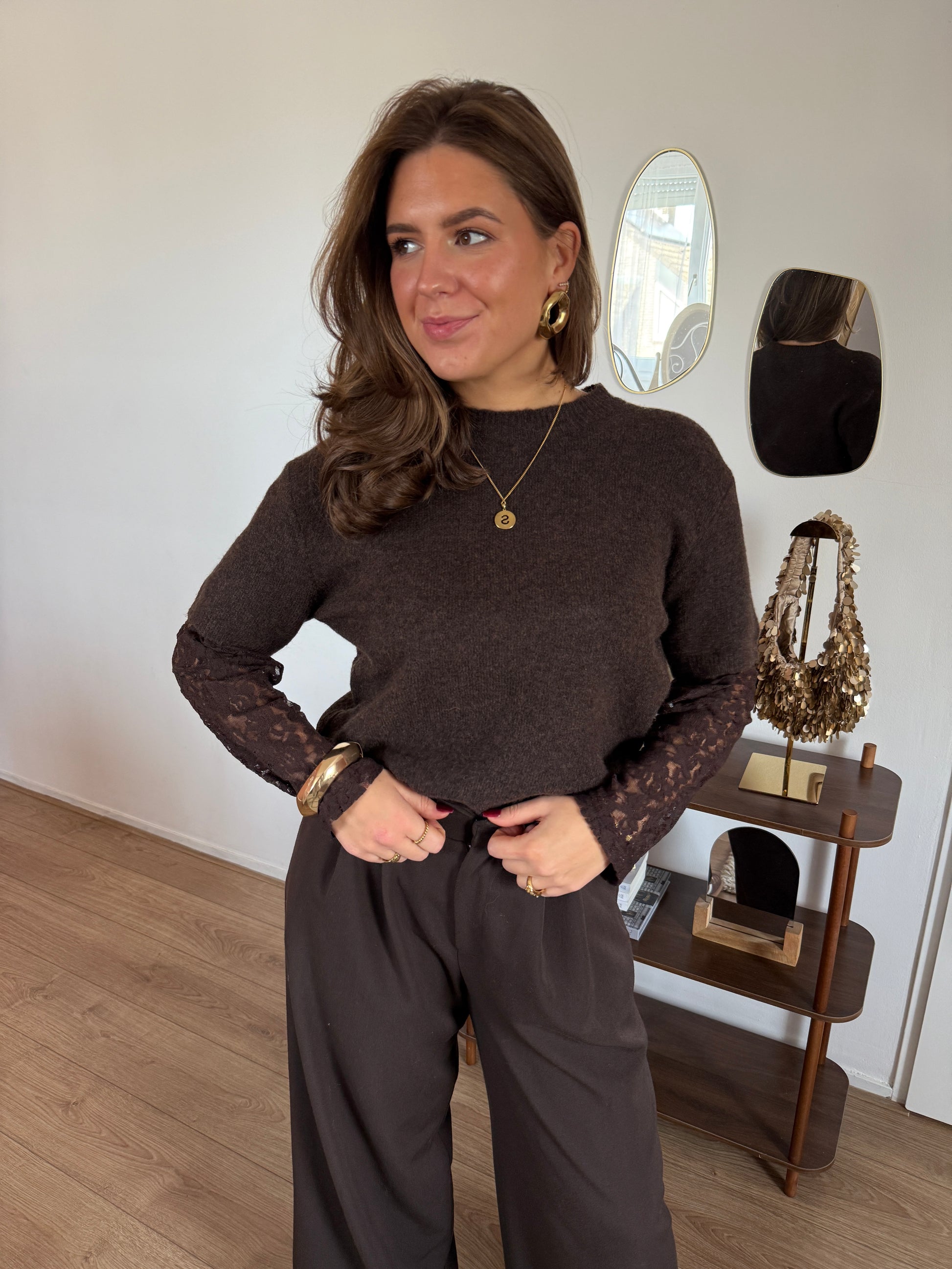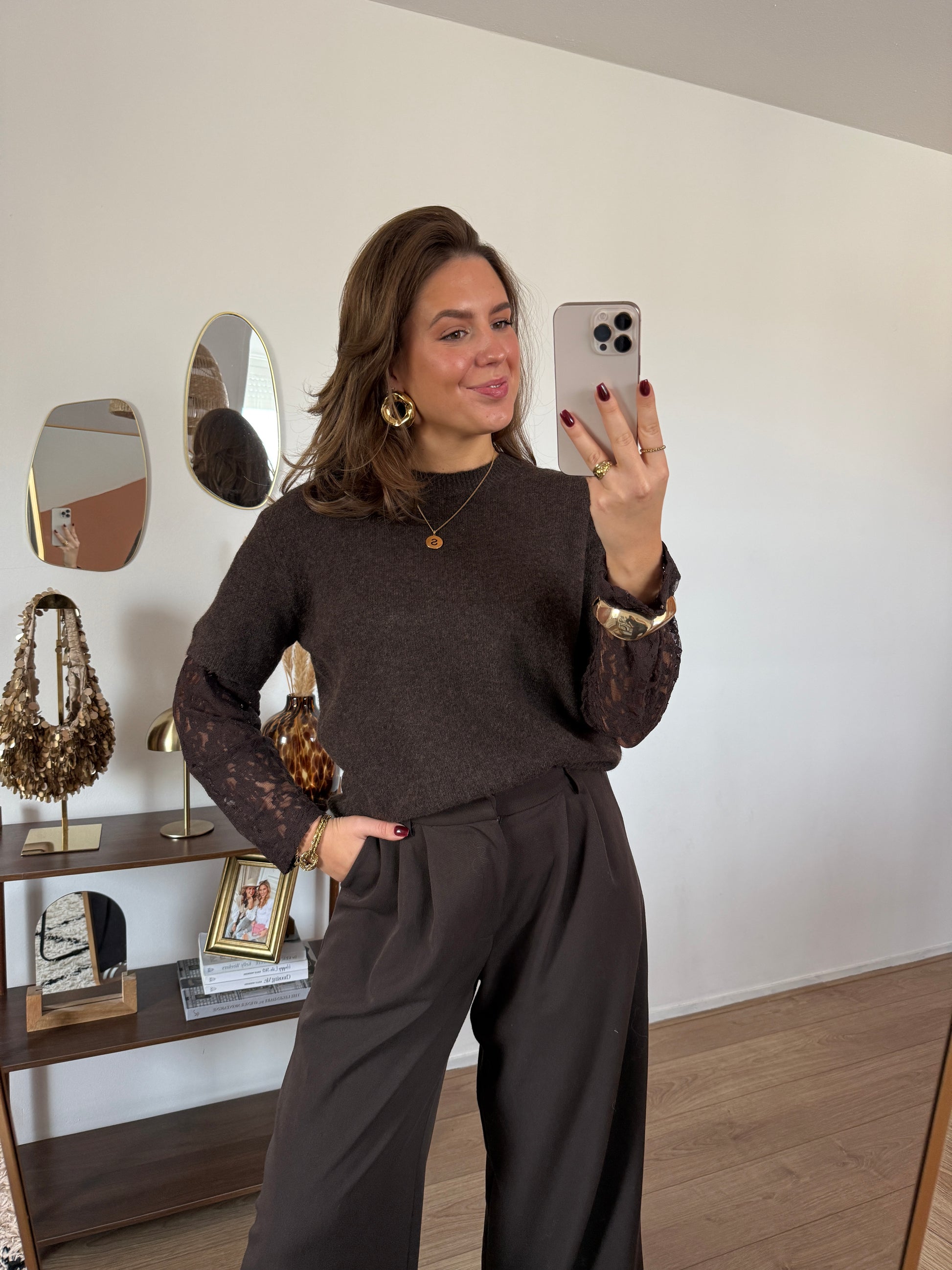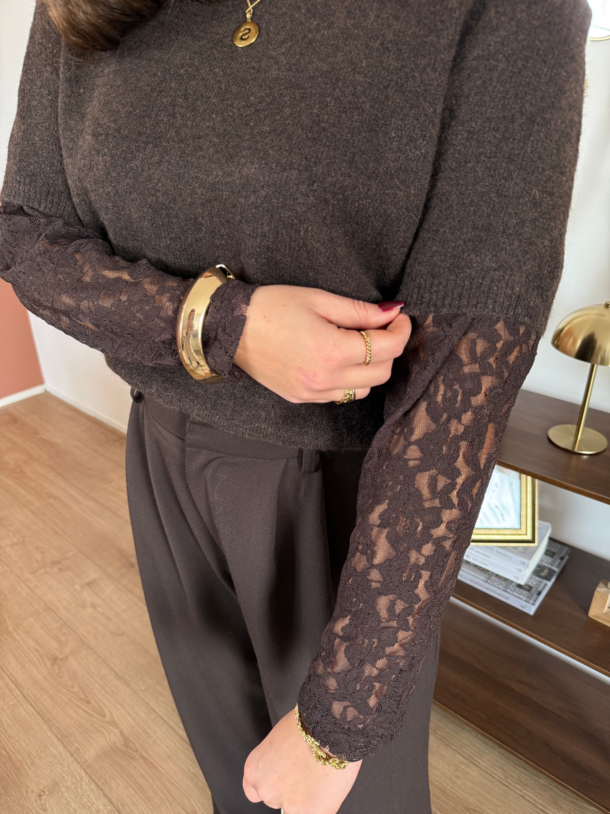Trui met kanten mouwen - bruin